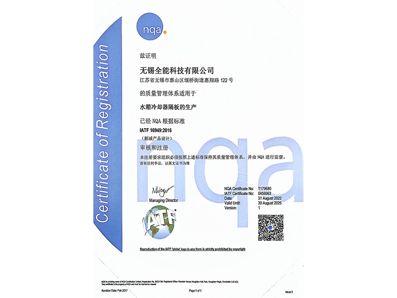 质量管理体系认证证书